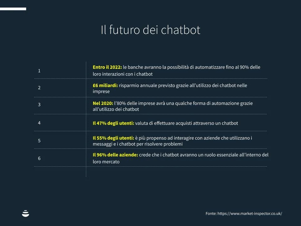 Come detto sopra quindi, lo sviluppo dell’AI e delle tecnologie voice porteranno grosse novità nel campo dei chatbot, rendendo tali soluzioni più sofisticate e perfezionando i campi di applicazione. Di conseguenza, sempre più business adotteranno l’uso dei chatbot al loro interno.