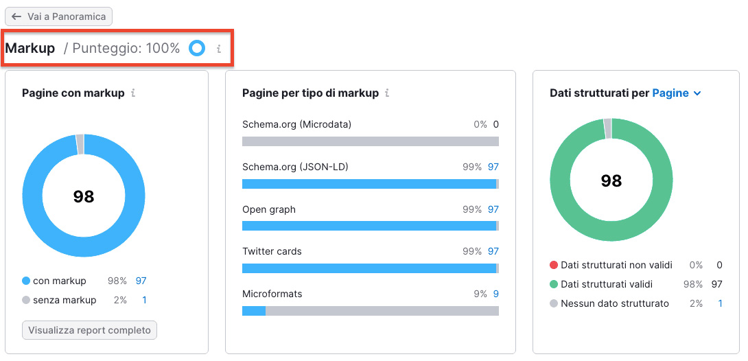 Molti dati dell’audit SEO di Semrush sono avanzati e non per chi si avvicina al mondo della SEO per la prima volta. Tuttavia, anche grazie agli innumerevoli articoli del blog e alle guide presenti nella dashboard, possiamo capire al meglio le problematiche e i punti forti del website o del progetto web in questione.