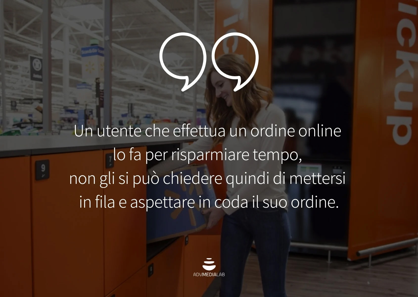Un utente che effettua un ordine online lo fa per risparmiare tempo, non gli si può chiedere quindi di mettersi in fila e aspettare in coda il suo ordine.