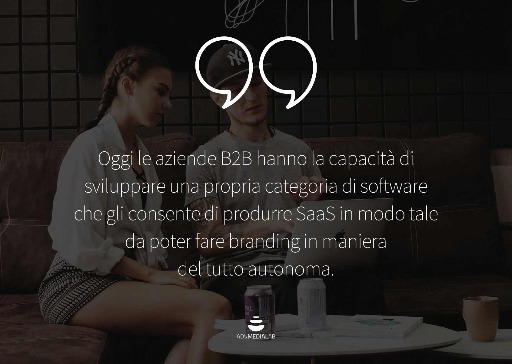 Oggi le aziende B2B hanno la capacità di sviluppare una propria categoria di software, una propria app con una propria user experience (UX), il che consente loro di produrre SaaS in modo tale da poter fare branding in maniera del tutto autonoma.