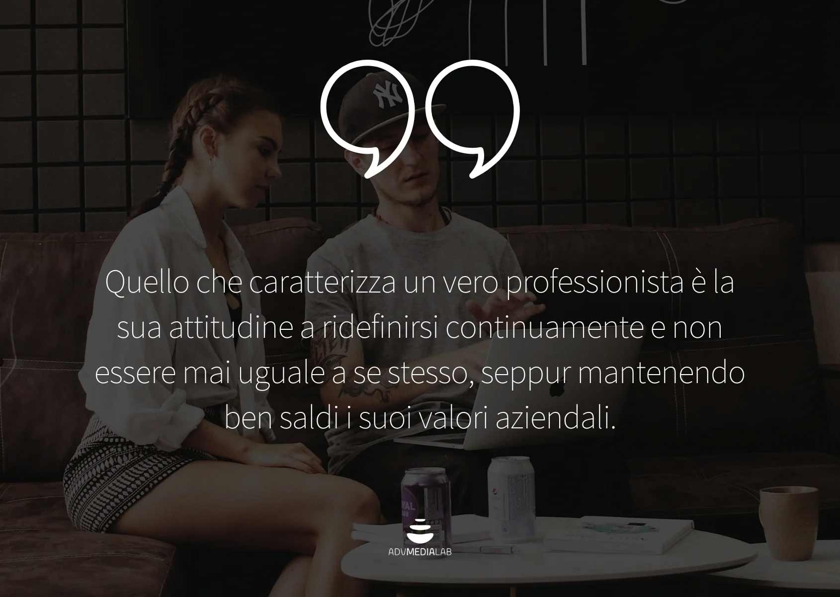 Quello che caratterizza un vero professionista è la sua attitudine a ridefinirsi continuamente e non essere mai uguale a se stesso, seppur mantenendo ben saldi i suoi valori aziendali.