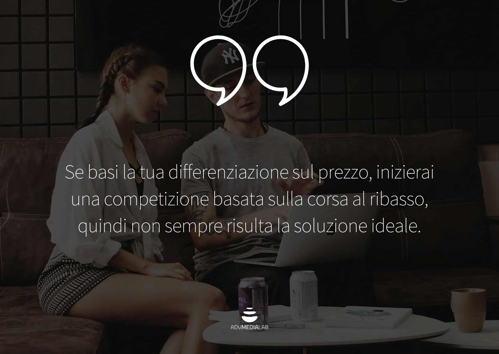 Se basi la tua differenziazione sul prezzo, inizierai una competizione basata sulla corsa al ribasso , quindi non sempre risulta la soluzione ideale.