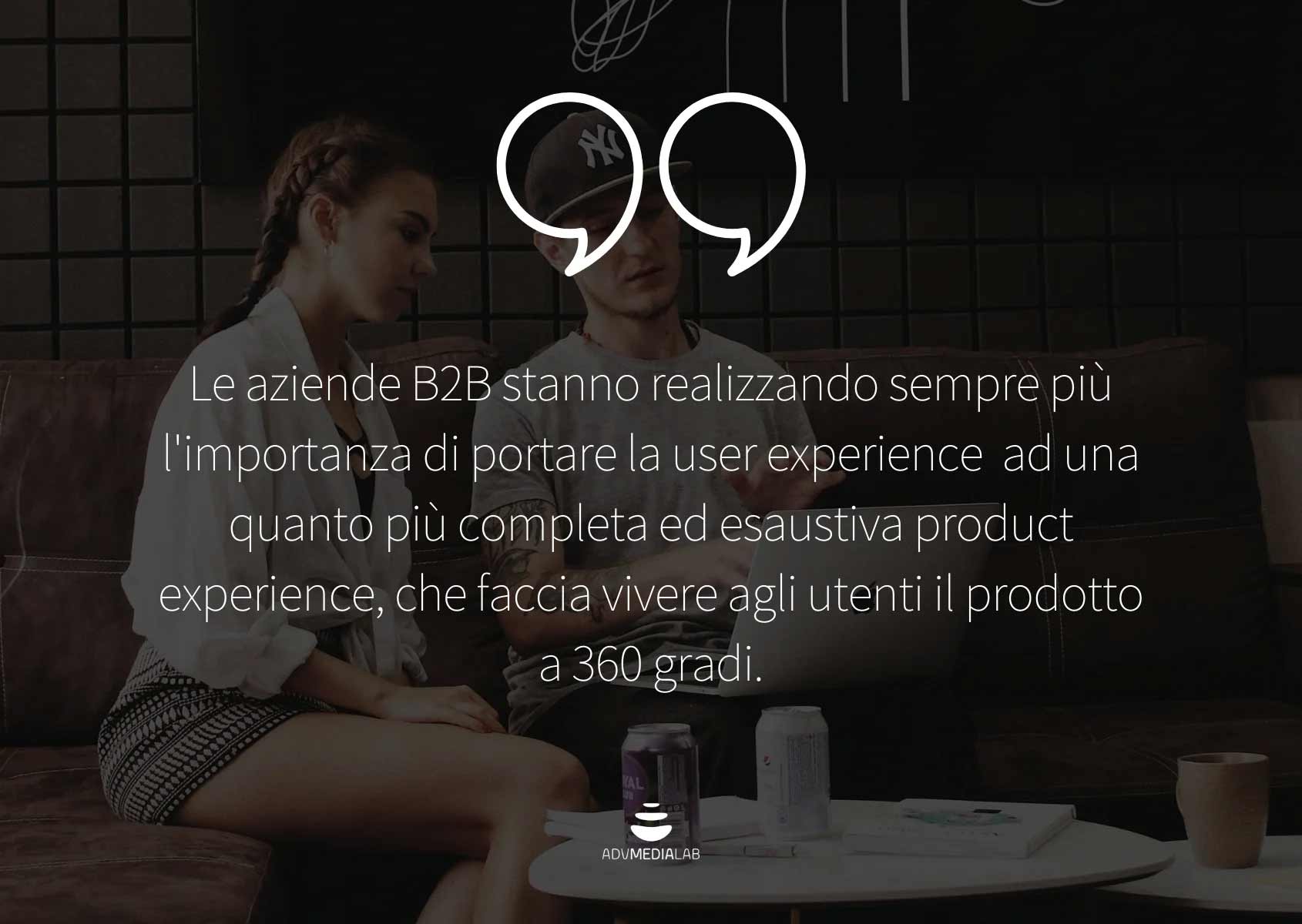 Le aziende B2B stanno realizzando sempre più l’importanza di portare la user experience ben al di là del semplice website o piattaforma, ovvero ad una quanto più completa ed esaustiva product experience, che faccia vivere agli utenti il prodotto a 360 gradi.