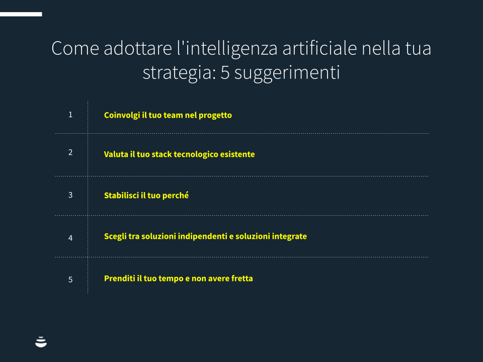 5 suggerimenti per introdurre efficacemente l’intelligenza artificiale all’interno della tua strategia di IA marketing