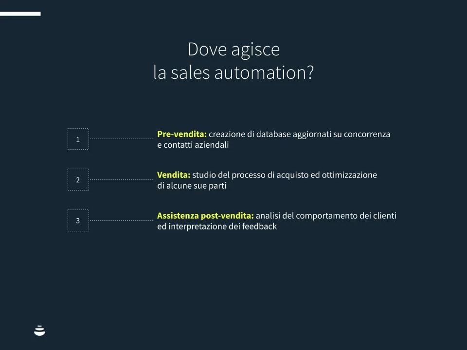 In secondo luogo, un approccio di sales automation potrebbe rappresentare il primo passo per un’automazione da espandere in altre aree aziendali.