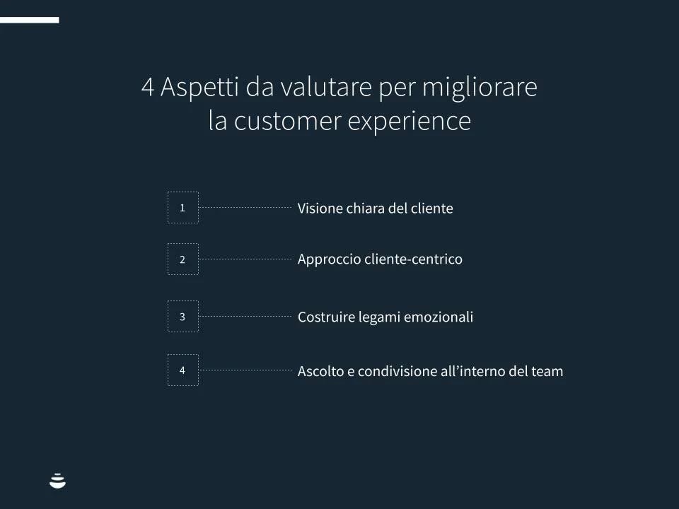 Qui ci sono 4 punti che racchiudono gli aspetti da valutare per migliorare la customer experience di un’azienda :