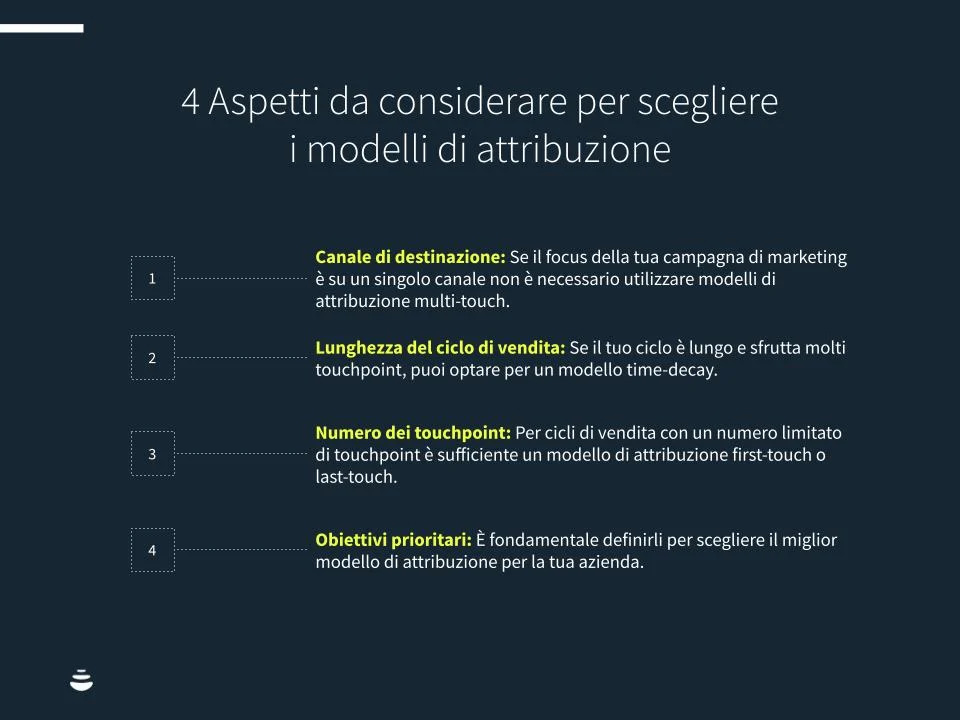 Alcuni aspetti da considerare per scegliere i modelli di attribuzione sono: