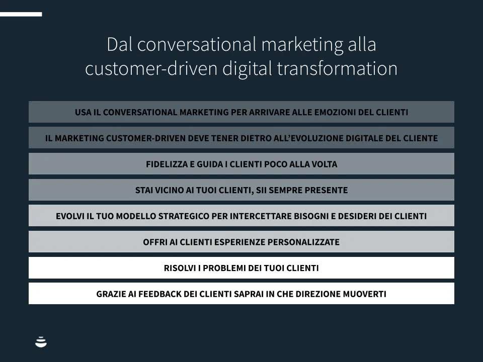 Prima di andare ad occuparci di quello che sarà l’argomento principale di questo articolo, ovvero la customer-driven digital transformation , è bene soffermarci un momento sul concetto di conversational marketing .