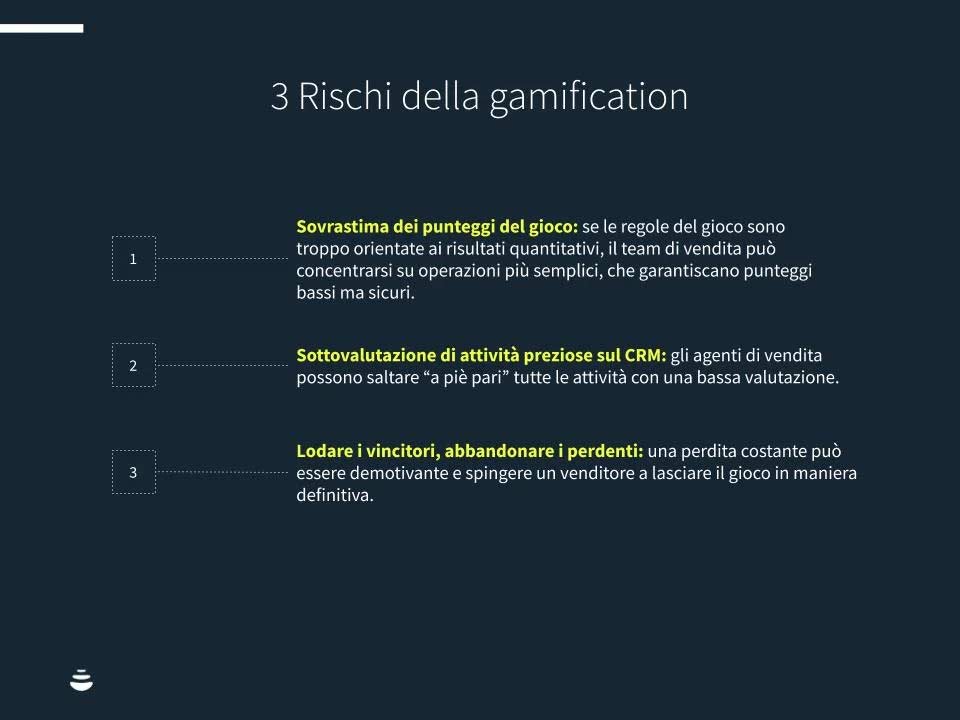 Investire oggi su una strategia di gamification può dunque essere la scelta giusta, in particolare se noti una certa riluttanza nell’uso del CRM da parte dei tuoi dipendenti.