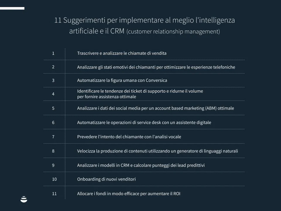 11 Suggerimenti per implementare al meglio l’intelligenza artificiale e il CRM (customer relationship management)