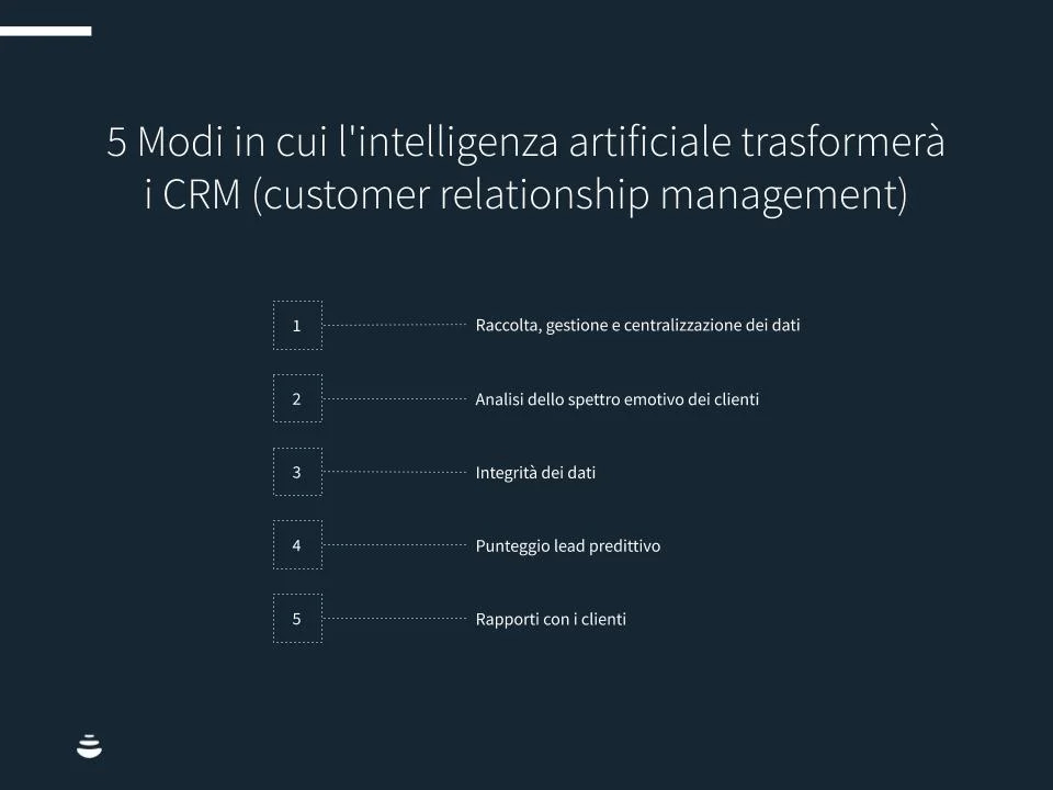 Vediamo ora in che modo l’AI sta incidendo sulla trasformazione dei CRM , esaminando gli aspetti principali di questo processo.