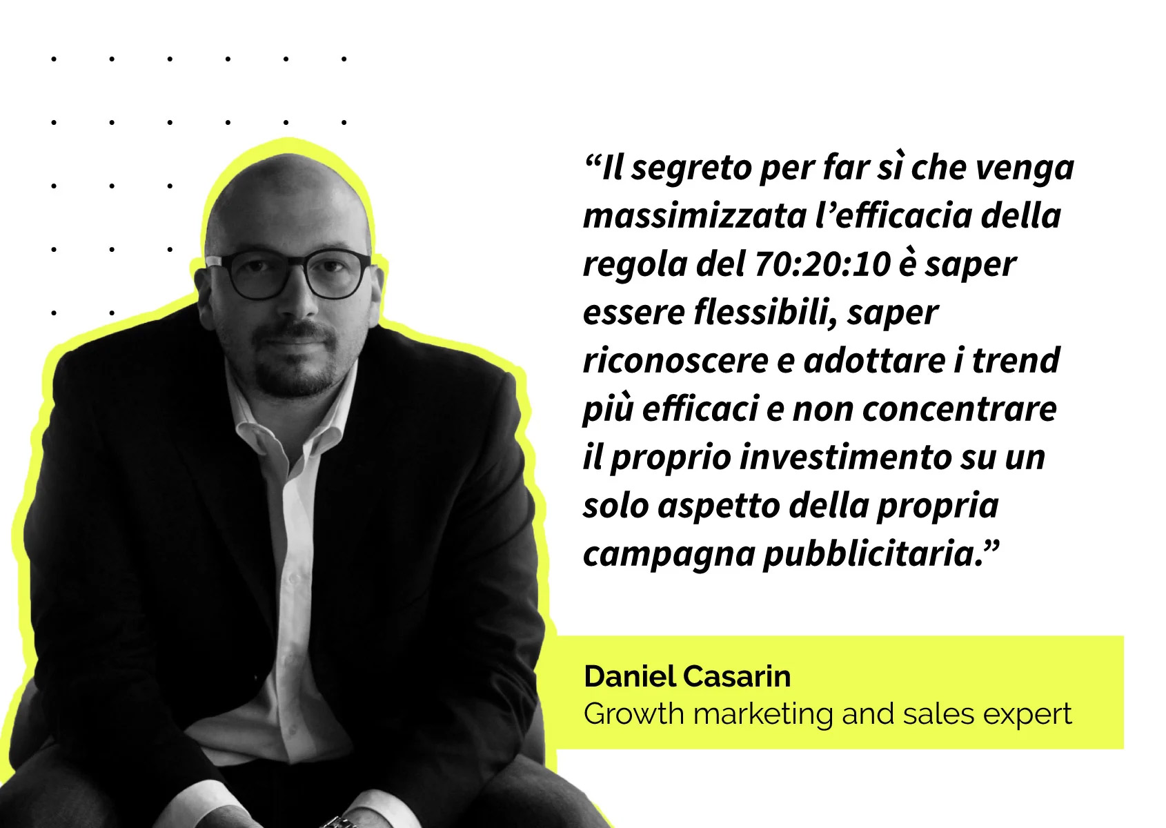 Il segreto per far sì che venga massimizzata l’efficacia della regola del 70:20:10 è saper essere flessibili, saper riconoscere e adottare i trend più efficaci (soprattutto in ambito social) e non concentrare il proprio investimento su un solo aspetto della propria campagna pubblicitaria.