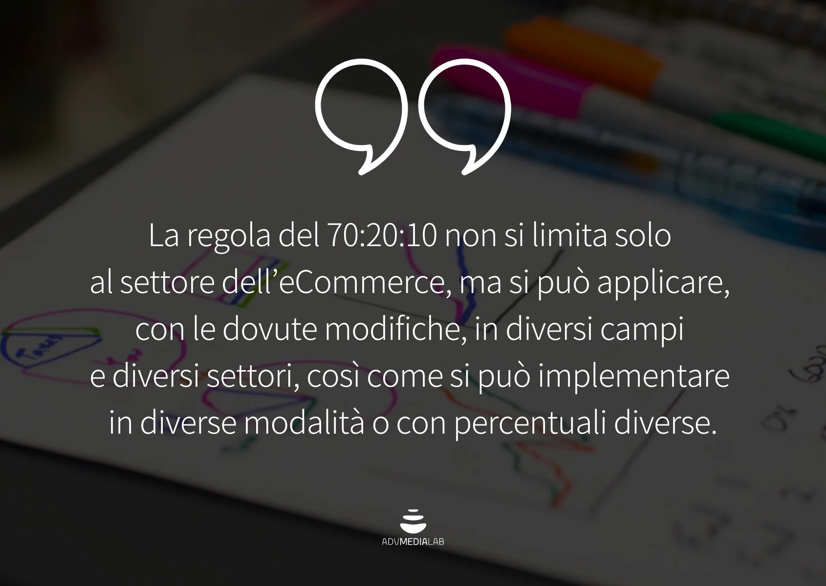 - La regola del 70:20:10 non si limita solo al settore dell’eCommerce, ma si può applicare, con le dovute modifiche, in diversi campi e diversi settori