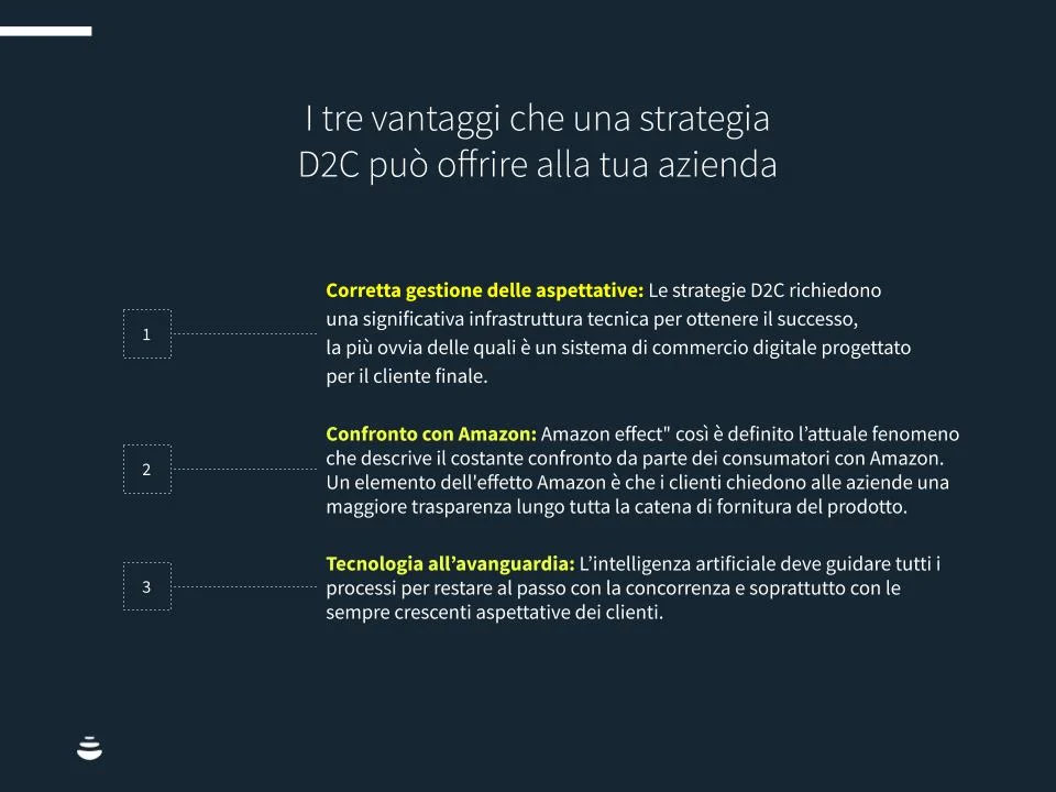 Ora andiamo ad analizzare i 3 vantaggi che la strategia D2C può offrire alla tua azienda :