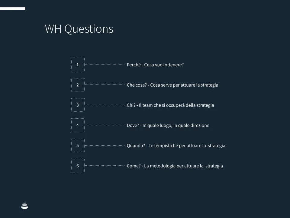 Per far sì che le domande siano funzionali, è necessario che siano il più semplici possibile, e le domande più semplici da porre sono le cosiddette “W questions”: