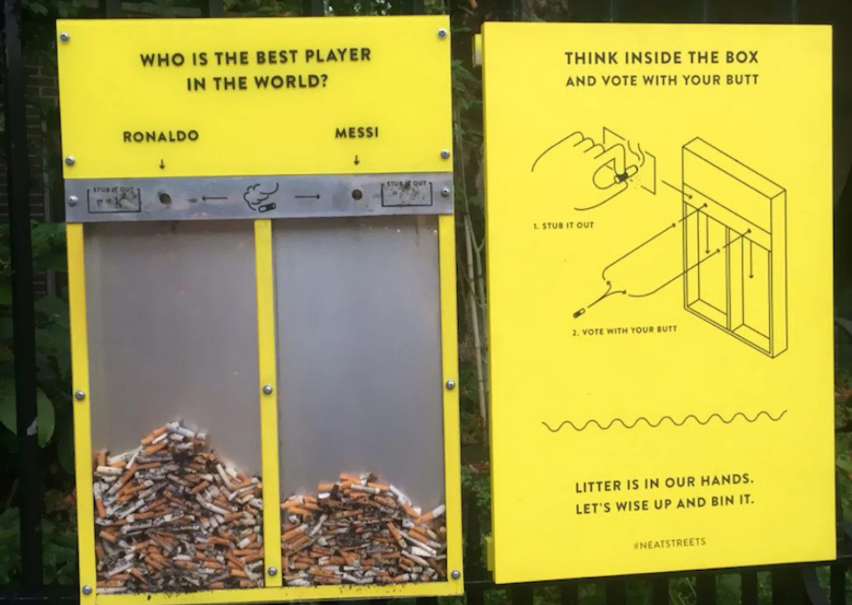 Nuovamente il nudging, ovvero l’uso del nudge per ottenere determinati output, può rappresentare una soluzione. Ecco un ingegnoso tabellone in un parco particolarmente frequentato da fumatori incuranti dell’ambiente.