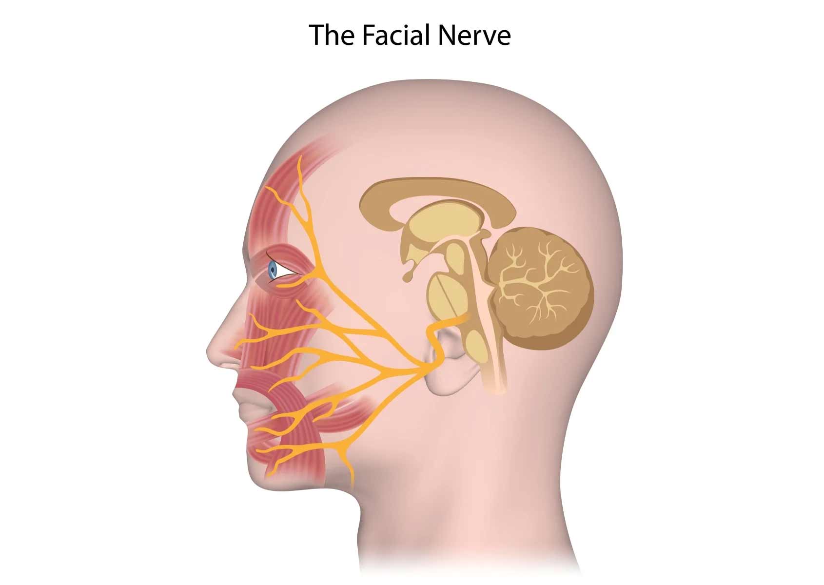 Il nervo facciale attivato direttamente dal tronco encefalico si dipana dal cranio ad una zona leggermente sotto l’orecchio e si dirama verso tutti i muscoli, proprio come un albero (vedi la figura a lato).