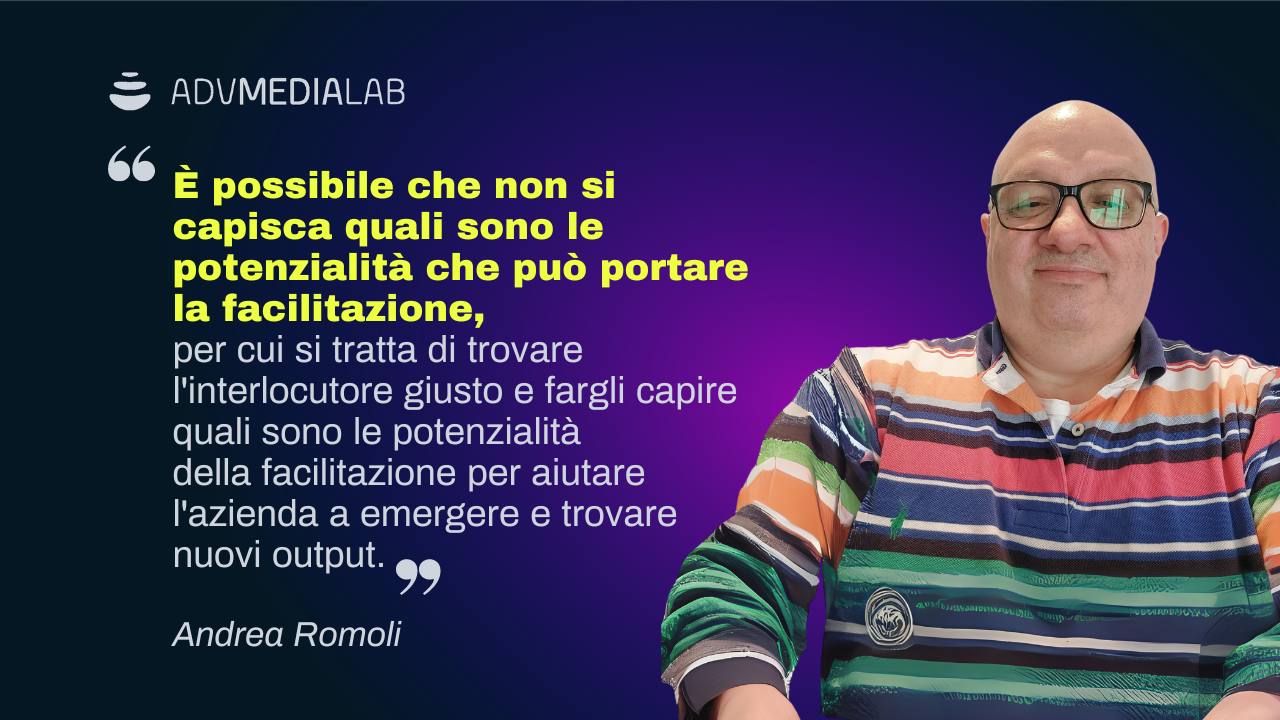 Andrea Romoli: Allora, senz’altro, la facilitazione, secondo me, avrà un forte sviluppo, soprattutto anche pensando alle soft skills che si andranno a sviluppare, soprattutto anche il World Economic Forum, se non ricordo male, recentemente ha pubblicato una tabella con le soft skills fino al 2025 e direi che rientravano quasi tutte le competenze che deve avere un facilitatore. Leadership, capacità di problem solving, capacità di esposizione, di esposizione proprio discorsiva, capacità di ascolto, tutte soft skills che vengono, che si acquisiscono sia con l’esperienza sia appunto… Teniamo presente che c’è anche un aumento, un incremento dei corsi e dei workshop che riguardano la facilitazione, per cui io personalmente lo vedo in maniera positiva.