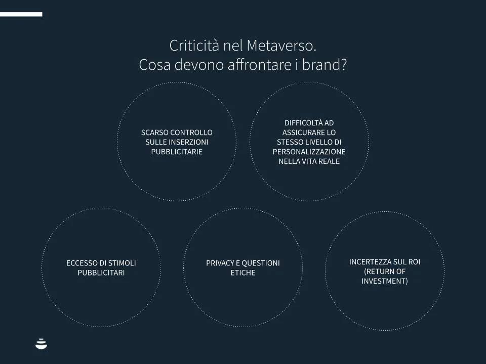 Eccesso di stimoli pubblicitari . Se da un lato è vero che le inserzioni nel Metaverso risultano maggiormente contestualizzate e meno invasive, dall’altro l’ingresso crescente di nuovi brand e il conseguente aumento della pubblicità potrebbero causare un sovraccarico sensoriale