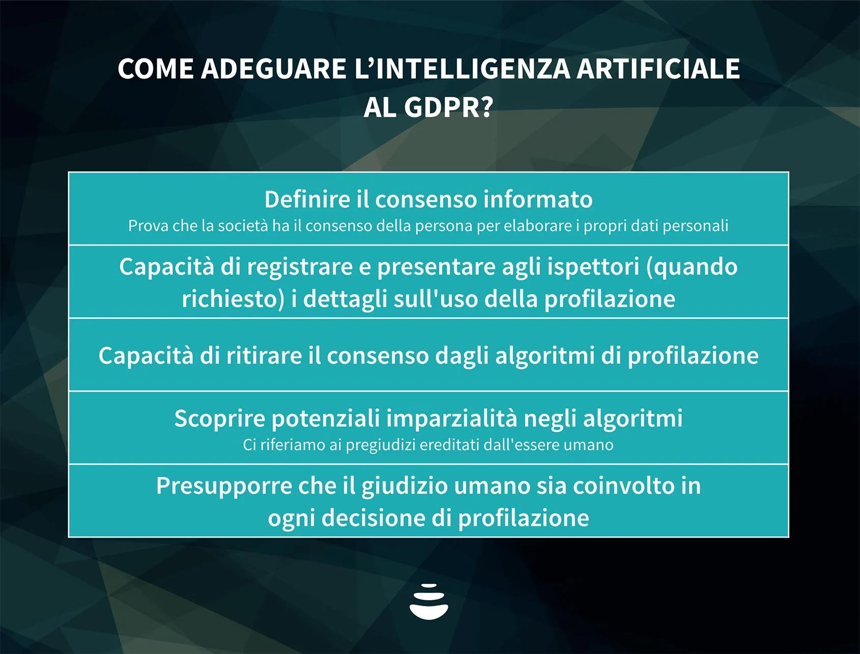 Mentre tutte queste regole del GDPR sono scoraggianti per le organizzazioni che hanno utilizzato l’analisi “tradizionale” per anni (Google Analytics et similia), l’utilizzo dell’intelligenza artificiale nell’ambito della profilazione e dell’analisi pone ancora più sfide.