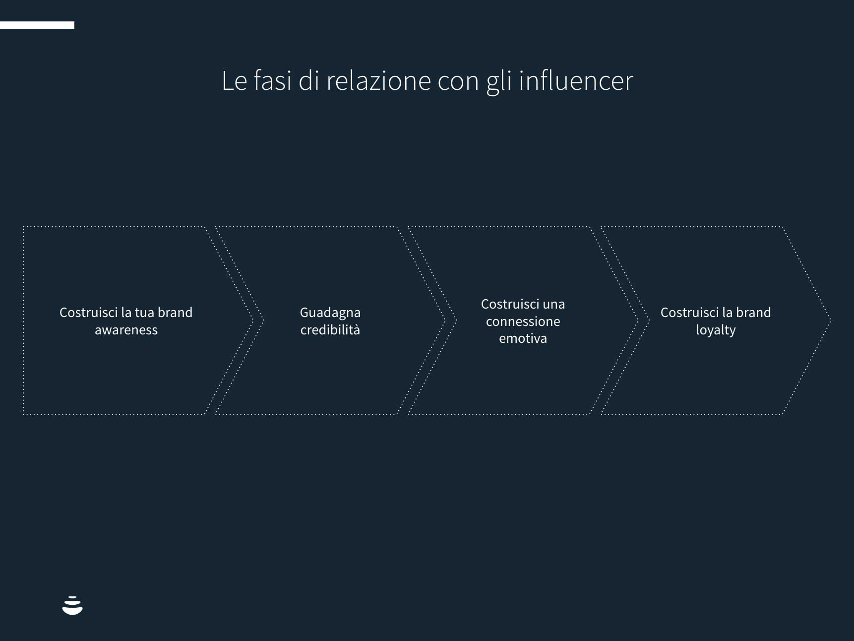 Le fasi di relazione con gli influencer potrebbero essere: