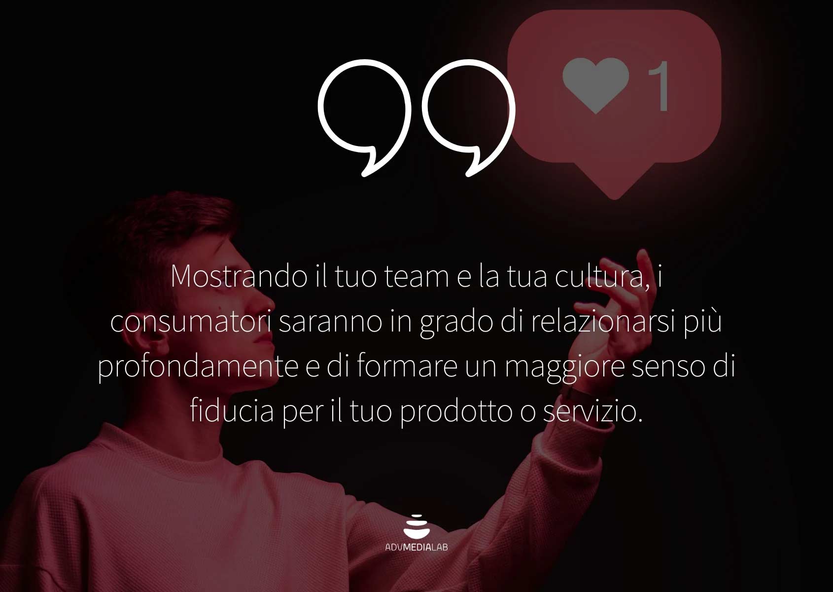 E’ importante per la gente avere una visione a tutto tondo dell’azienda e del brand! Per questo postare foto/video divertenti sui tuoi dipendenti e su come lavori può rivelarsi un’ottima scelta.