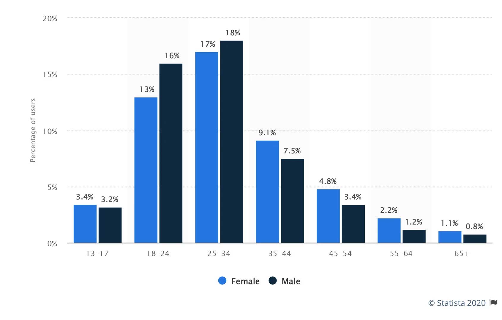 Distribution of Instagram users worldwide as of April 2020, by age and gender