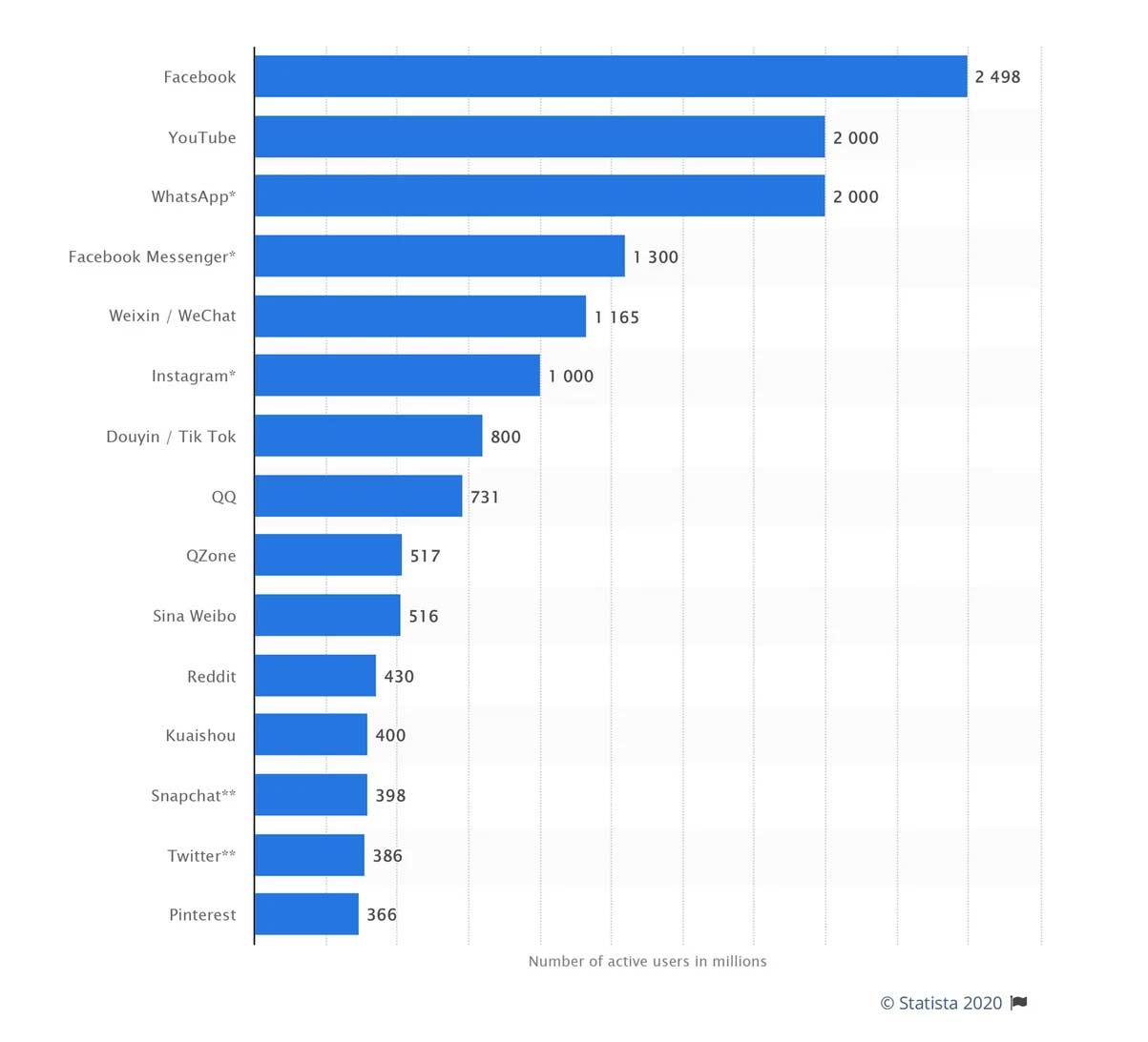 Most popular social networks worldwide as of April 2020, ranked by number of active users (in millions)