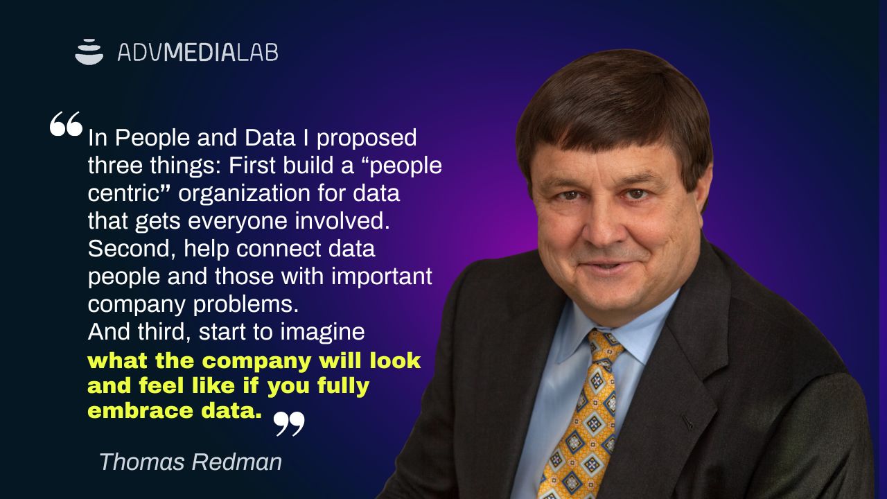 Thomas Redman: trovo che ci siano due ruoli fondamentali per la data quality: il “cliente” che deve chiarire di cosa ha bisogno e il “creatore” che deve capire queste esigenze e cercare di soddisfarle. Si noti che queste responsabilità sono condivise. Non succede nulla se solo una delle parti ci prova.