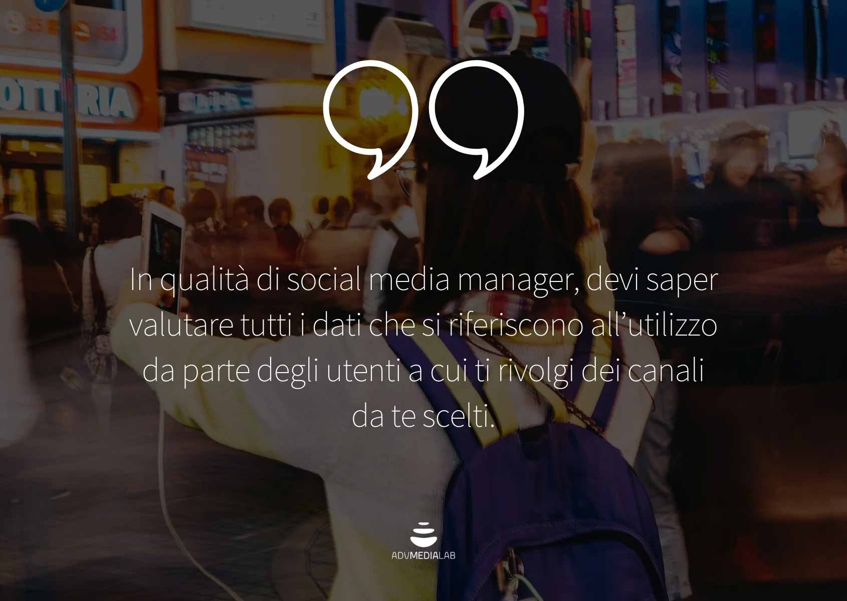 In qualità di social media manager, devi saper valutare tutti i dati che si riferiscono all’utilizzo da parte degli utenti a cui ti rivolgi dei canali da te scelti.