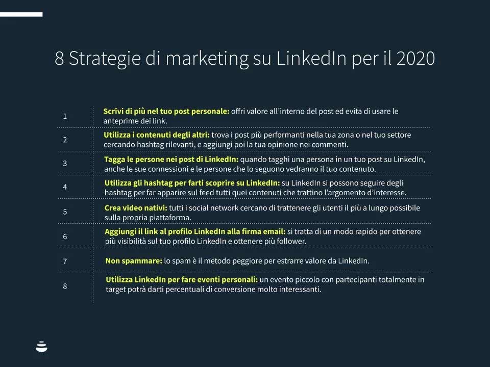 Ti consigliamo di seguire tutte le procedure che LinkedIn ha proposto sulla piattaforma di Business LinkedIn .