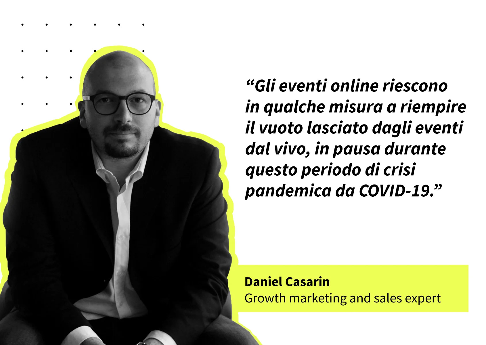 Daniel Casarin – Imprenditore ed analista indipendente, si dedica al mondo della comunicazione, del marketing, del business design e della trasformazione digitale.