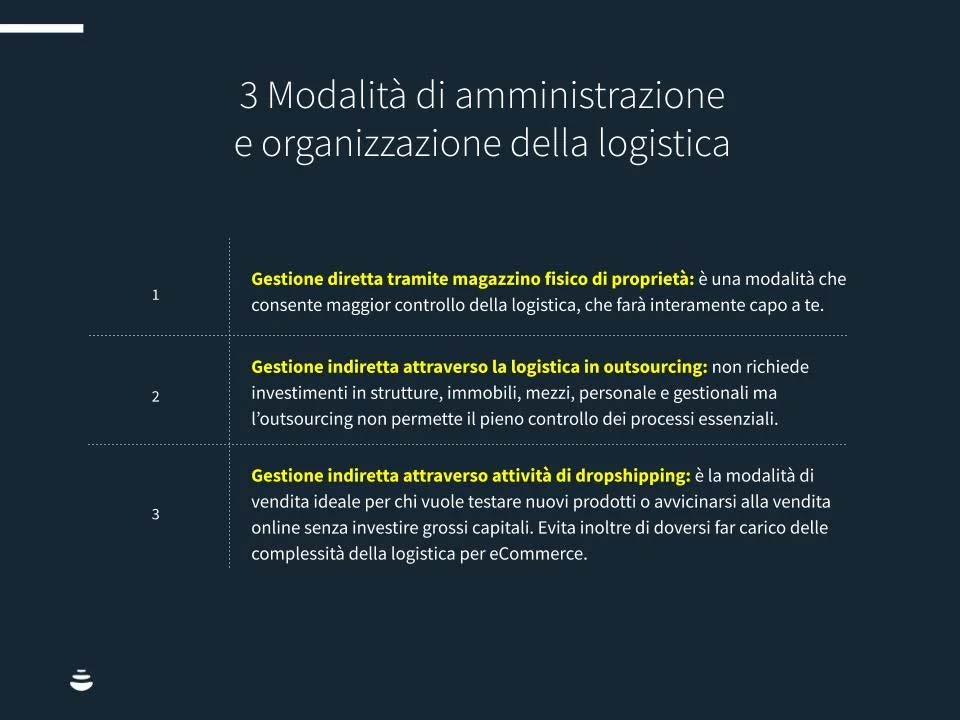 Questa include gestione del magazzino, evasione degli ordini, organizzazione delle spedizioni e assistenza al cliente.