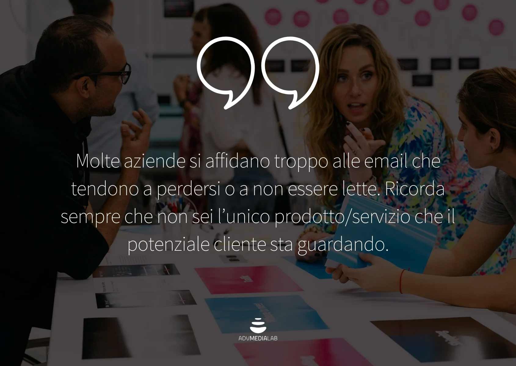 Molte aziende si affidano troppo alle email, che tendono a perdersi o a non essere lette. Ricordati sempre che non sei l’unico prodotto/servizio che il potenziale cliente sta guardando.