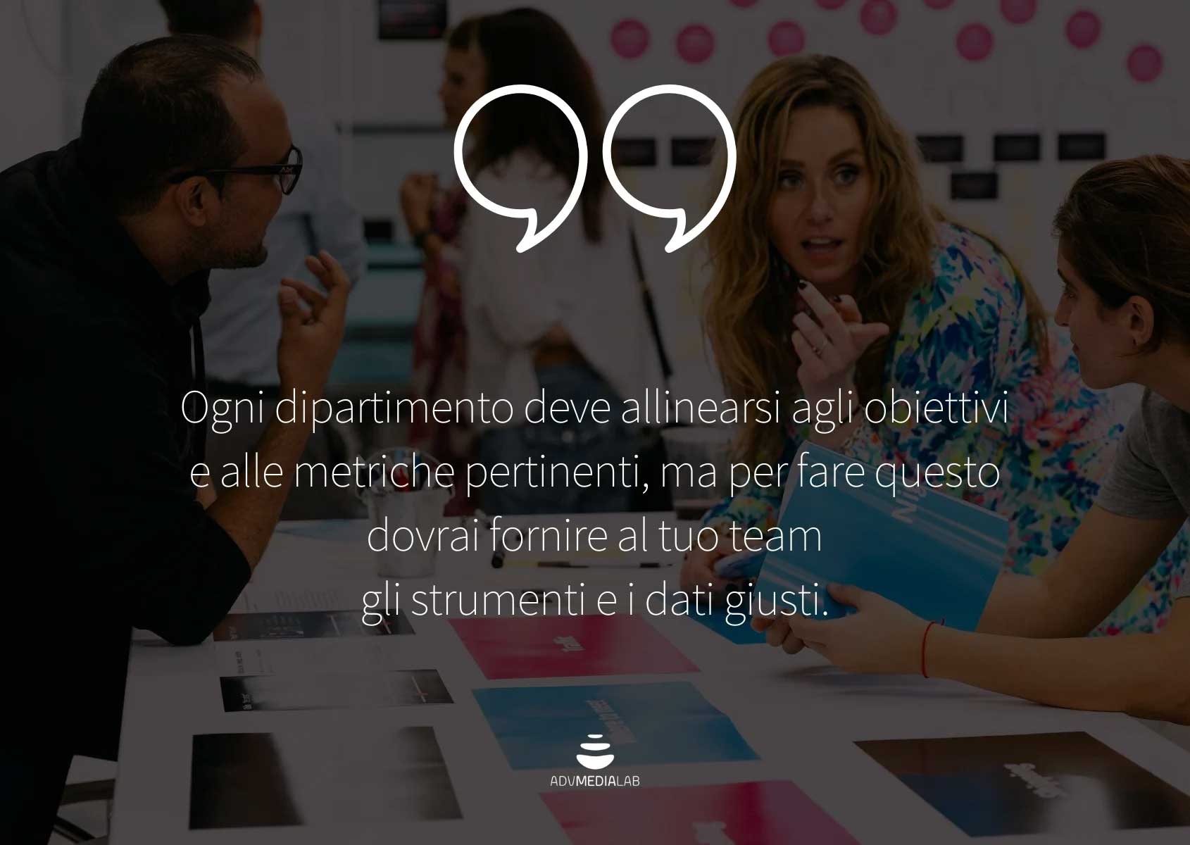 Per avere successo con questo metodo, ogni dipartimento dovrà allinearsi agli obiettivi e alle metriche pertinenti.