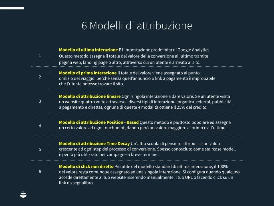 In questo contenuto abbiamo visto cosa sia e a cosa serva un modello di attribuzione , dettagliando le caratteristiche delle diverse tipologie prese in esame.