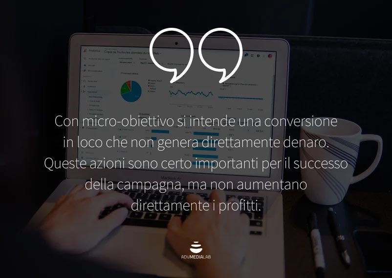 Con micro-obiettivo si intende una conversione in loco che non genera direttamente denaro (iscrizione alla newsletter, richieste di catalogo o visualizzazioni di pagine di contatto). Queste azioni sono certo importanti per il successo della campagna, ma non aumentano direttamente i profitti.