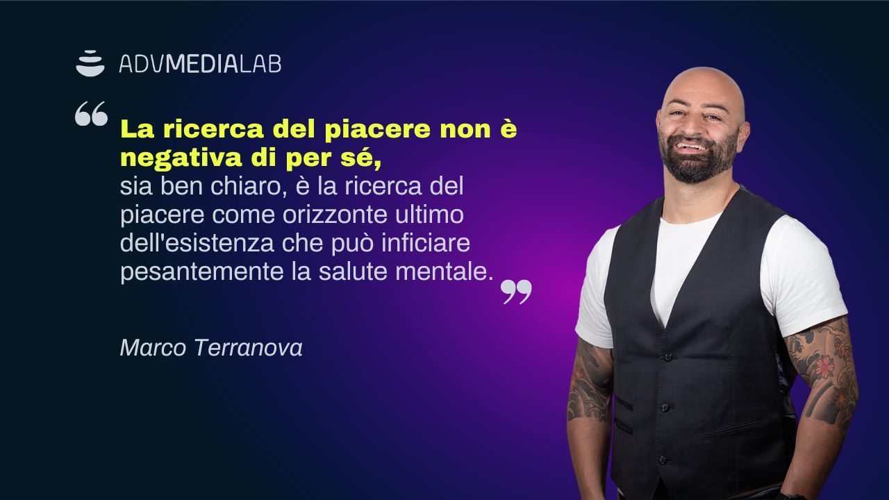 Marco Terranova: È stato dimostrato che l’uso smodato dei nuovi media e delle nuove tecnologie indebolisca le abilità mentali e sia causa di sedentarietà, obesità e depressione. Ormai la maggior parte della vita viene trascorsa davanti a schermi e tastiere in posizione seduta… Si lavora, si gioca, si fa sesso tramite il pc ed il corpo rimane il grande escluso. Questo ovviamente ha delle implicazioni molto pesanti sulla salute psico fisica di tutti noi che viviamo in questa stramba società.