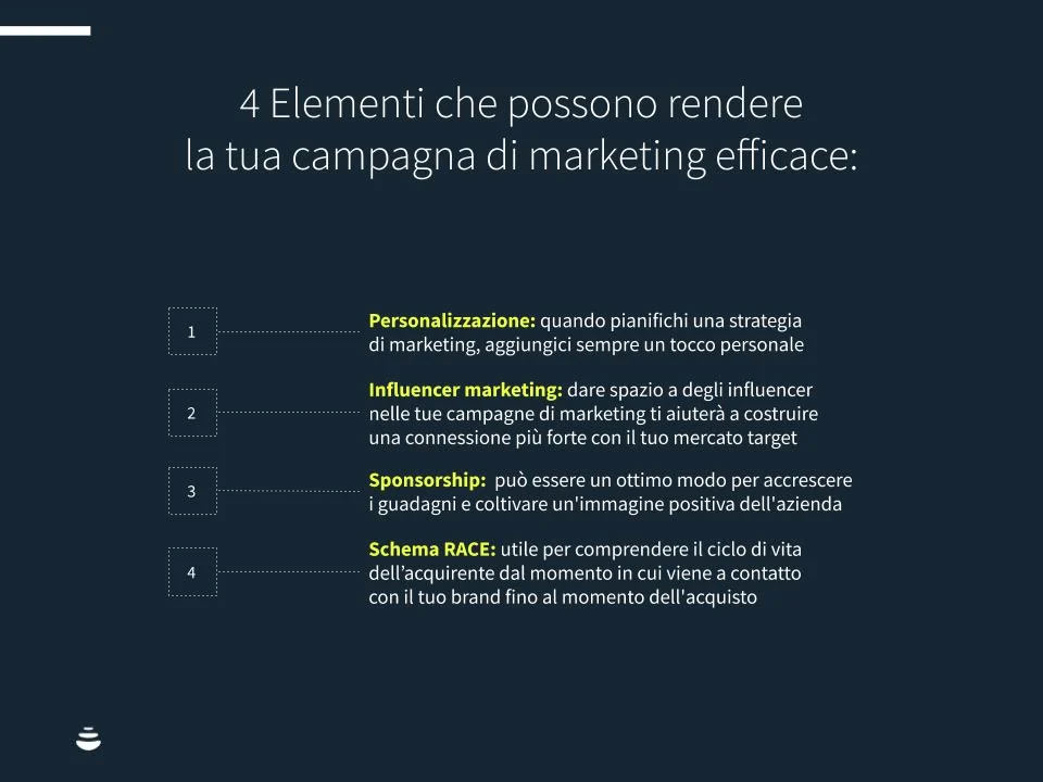 Di seguito ti illustreremo come la personalizzazione, l’influencer marketing, lo sponsorship e lo schema RACE possono aiutare la tua azienda a creare una campagna di marketing efficace.