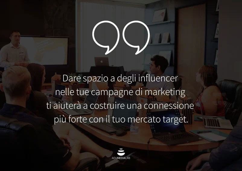 Tralasciando queste zone d’ombra, dare spazio a degli influencer nelle tue campagne di marketing ti aiuterà a costruire una connessione più forte con il tuo mercato target .