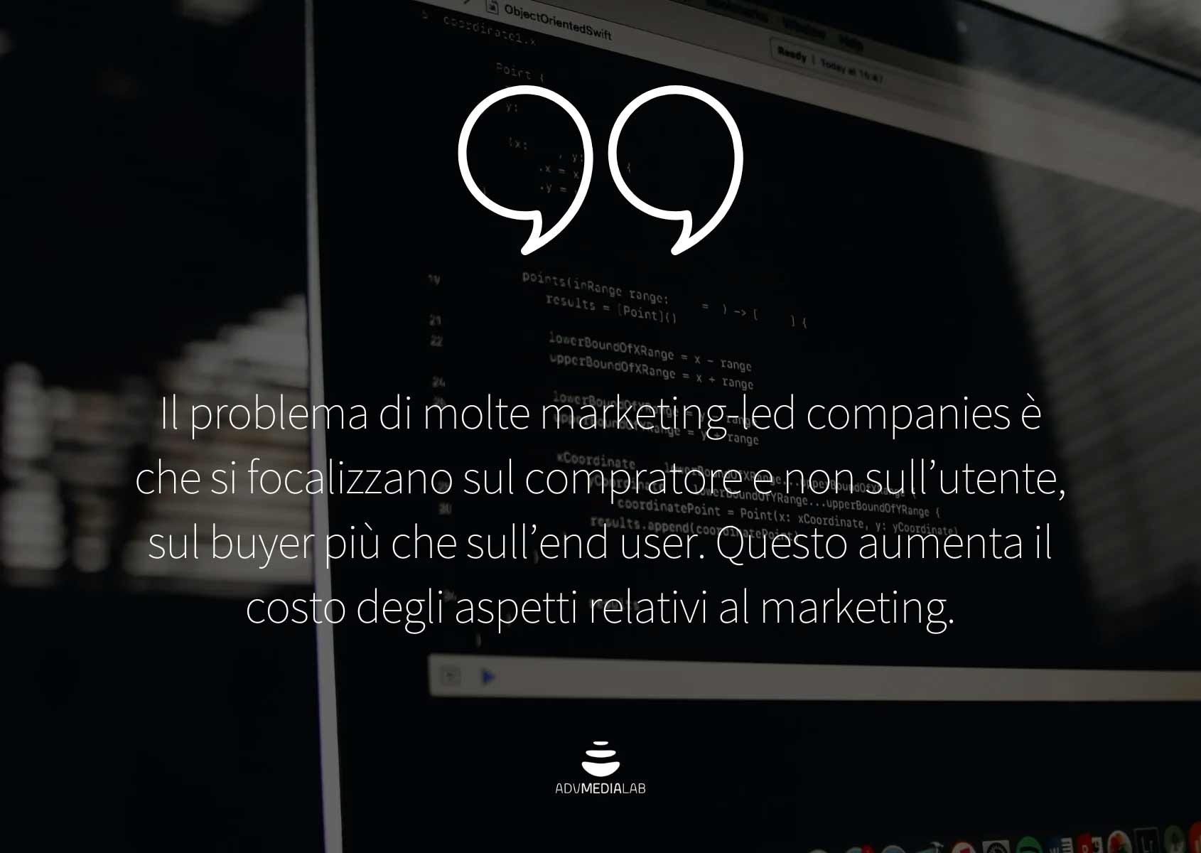 Il problema di molte marketing-led companies è che si focalizzano sul compratore e non sull’utente, sul buyer più che sull’end user . Questo aumenta il costo degli aspetti relativi al marketing.