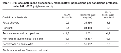 I lavoratori stranieri sono 2.374.000 (il 10,3% degli occupati, l’87,1% sono lavoratori dipendenti, il 29,9% svolge lavori senza bisogno qualifica professionale, l’8,2% professioni tecniche e qualificate).