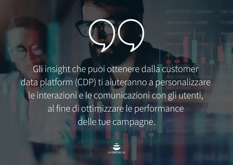 - Media buying efficace: perché i marchi investono nei dati provenienti da fonti terziarie? Perché i dati che possiedono non riescono ad offrire quel valore e quella conoscenza necessaria all’azienda. Per questo motivo si rivolgono a database esterni, per integrare con informazioni più ampie sul mercato di riferimento. Una CDP invece, ti permette di avere dati ricchi e approfonditi, provenienti da fonti proprietarie e monitorate dall’azienda, senza il bisogno di investire all’esterno