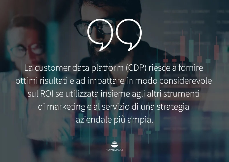 La customer data platform (CDP) riesce a fornire ottimi risultati e ad impattare in modo considerevole sul ROI se utilizzata insieme agli altri strumenti di marketing e al servizio di una strategia aziendale più ampia.