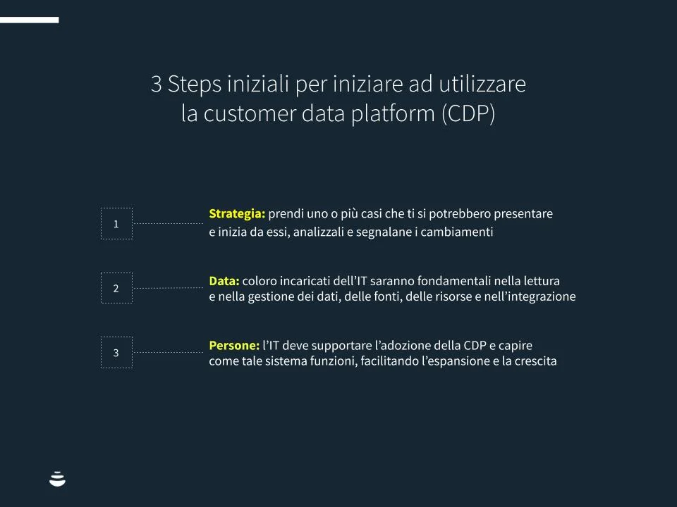 Ti proponiamo 3 step che consideriamo essenziali per iniziare ad utilizzare la customer data platform (CDP):