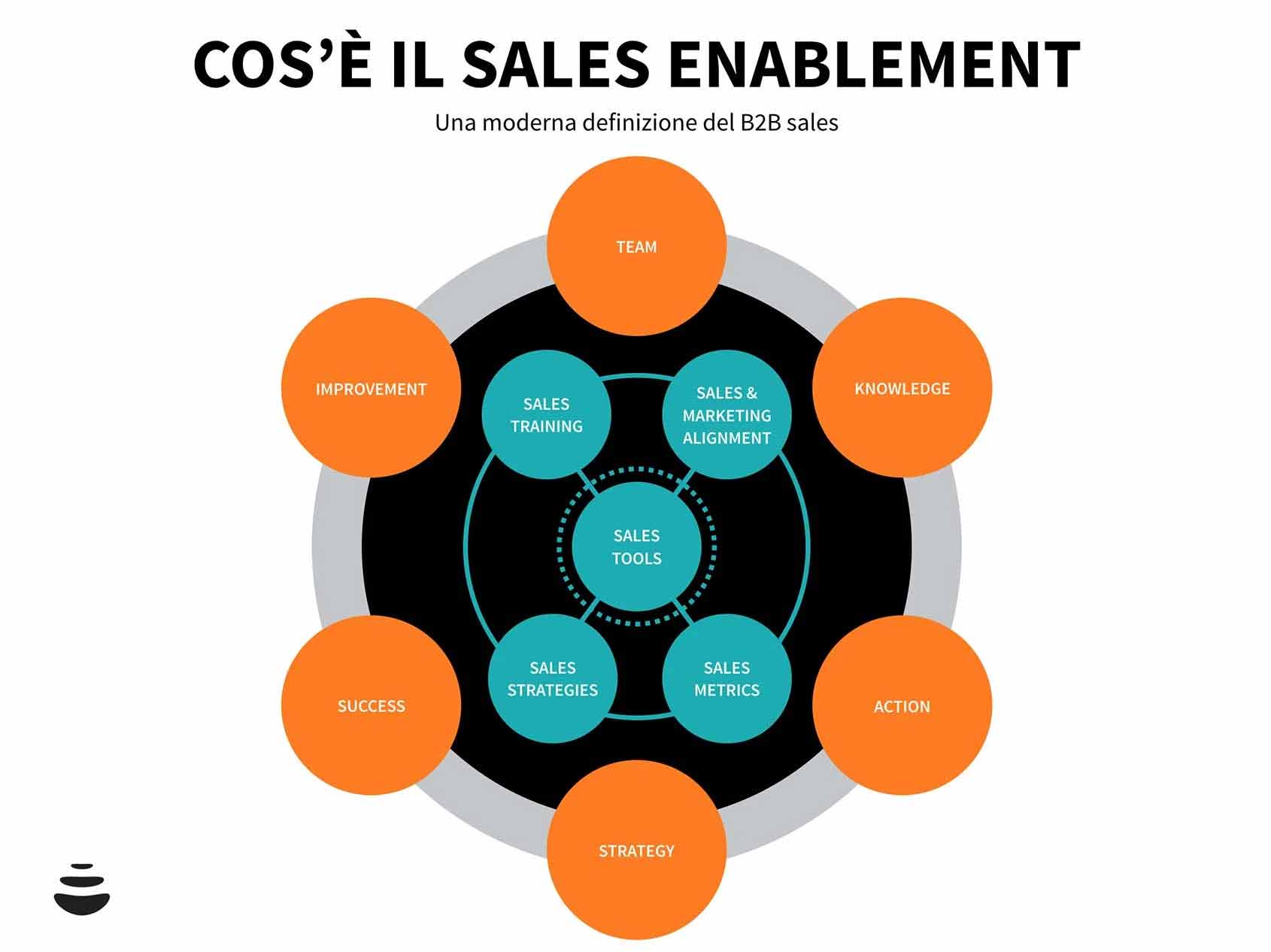 Partiamo dal presupposto che il termine “sales enablement” è difficile da tradurre: letteralmente significa “abilitazione delle vendite”, ma queste tre parole quasi non hanno senso dette così, non definiscono al meglio ciò che è realmente, né è così semplice e veloce come attivare quella leva.