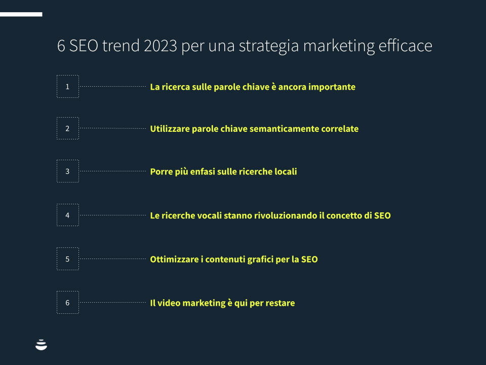 E con il nuovo anno appena iniziato, adesso è il momento giusto per guardare al futuro e a quelli che sono i 6 trend SEO più importanti per il 2023 :