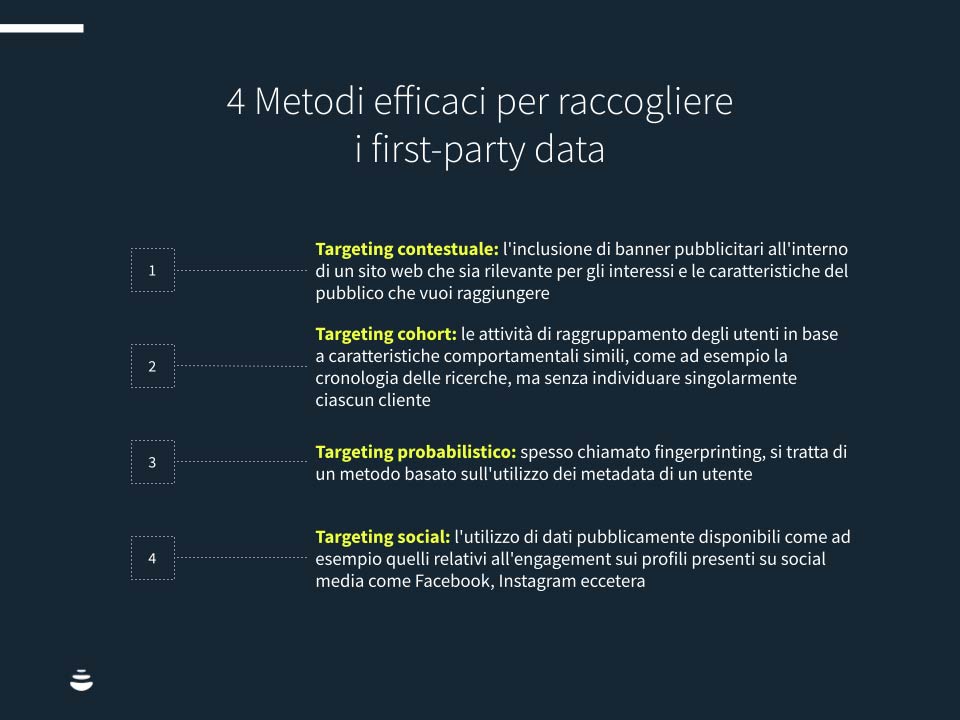 I first-party data costituiranno gran parte delle fonti a tua disposizione in futuro. Di grande importanza sono i metodi (decisamente più proattivi) con cui sarà possibile raccogliere questi dati.