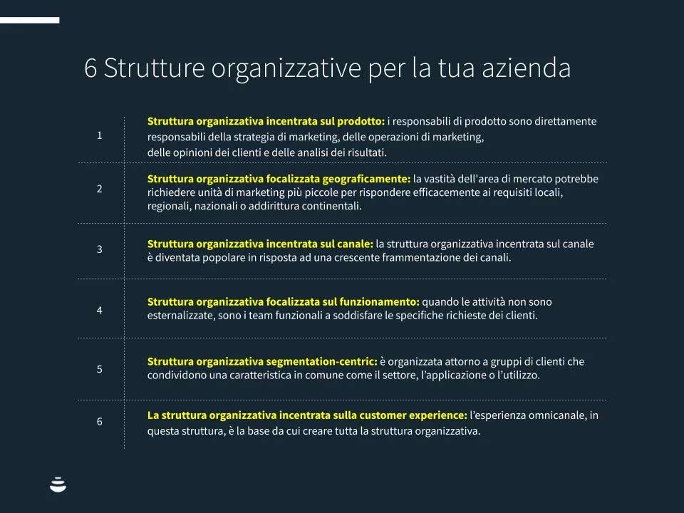 Una variabile della struttura organizzativa incentrata sul segmentation-centric è la struttura organizzativa incentrata sulla customer experience.