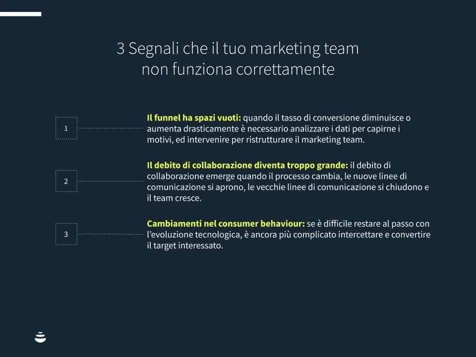 Secondo Hubspot, sono 3 le situazioni che manifestano la necessità di cambiare la struttura del tuo marketing team, ovvero: